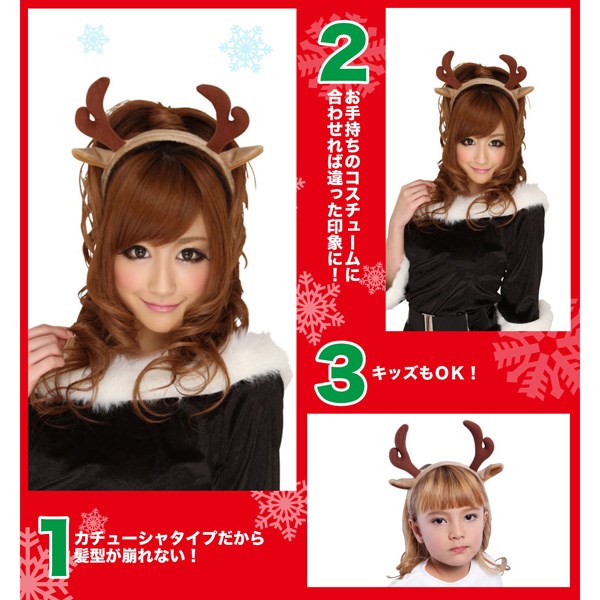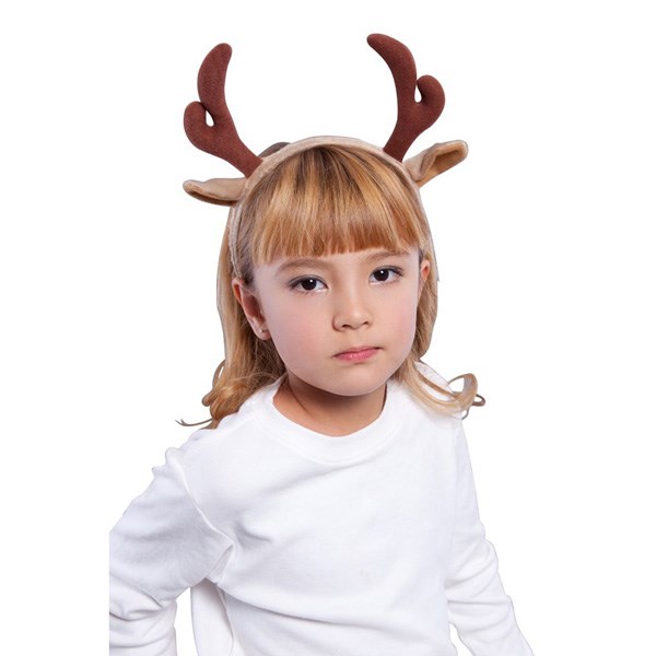 A headband with reindeer antlers and ears. This is all you need to easily create a reindeer look! Made out of slightly napped material.