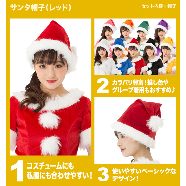 A colorful Santa hat series available in 9 colors! In popular colors perfect for concerts and events! Even those embarrassed to wear costumes can easily enjoy a Santa mood with this! Great for wearing together in a group to stand out!