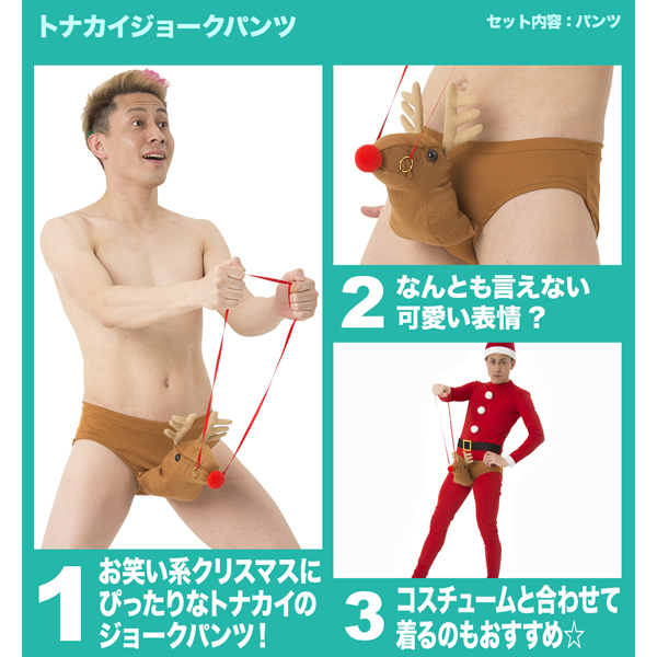 Joke pants that look like you are riding a reindeer! This fun item is made of stretchy material for ease of wear! Recommended for wear on its own or coordinated with full body tights etc! Dash through the holy night at high speed in these!