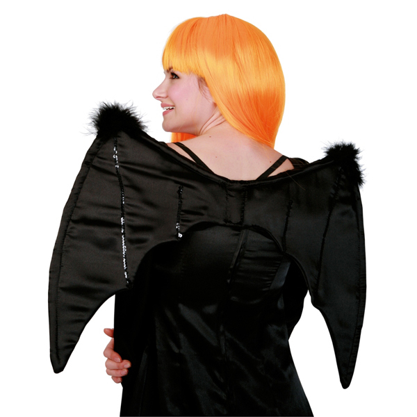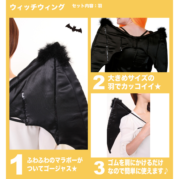 翅膀上面附有飄逸毛毛的小惡魔翅膀。掛在肩上就可輕鬆穿戴!
